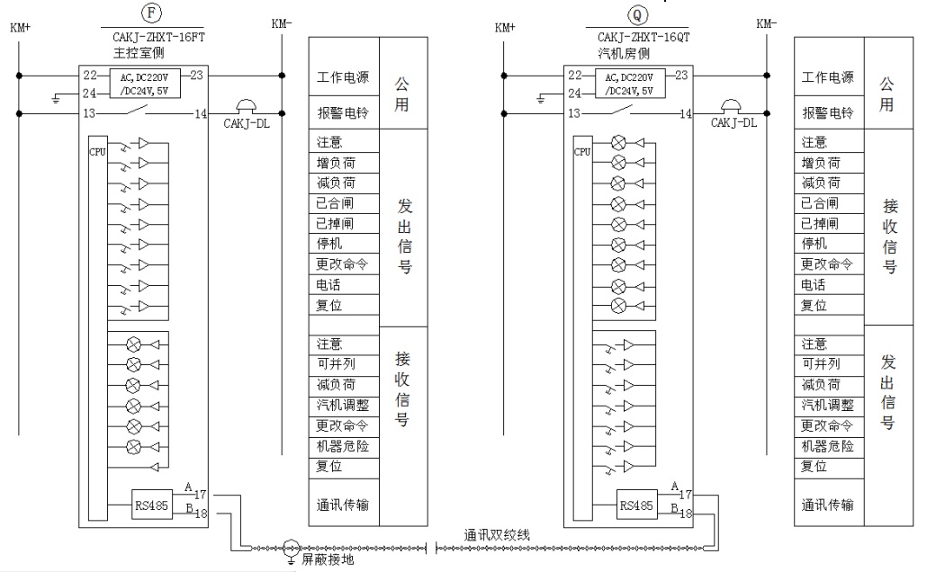 通訊連接方式接線圖(產(chǎn)品型號CAKJ-ZHXT-16FT,CAKJ-ZHXT-16QT)