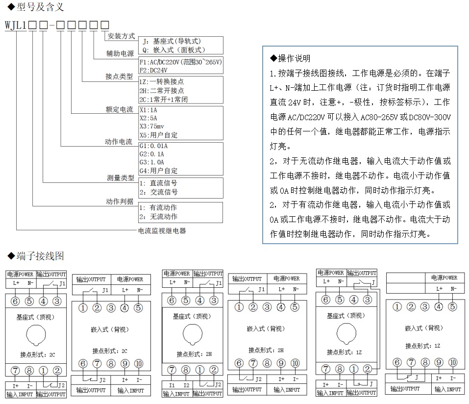 WJL100系列電流監視繼電器,適用于交直流電流回路,監視電流有或無。對小電流信號能做出準確判斷,對額定電流可以長期通入,繼電器檢測速度快,動作可靠,是運行設備簡單可靠的狀態監視繼電器。
