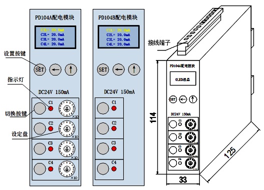 PD104系列直流配電控保模塊是DC24V直流配電系統控制保護模塊,以下簡稱模塊,該模塊具備1路輸